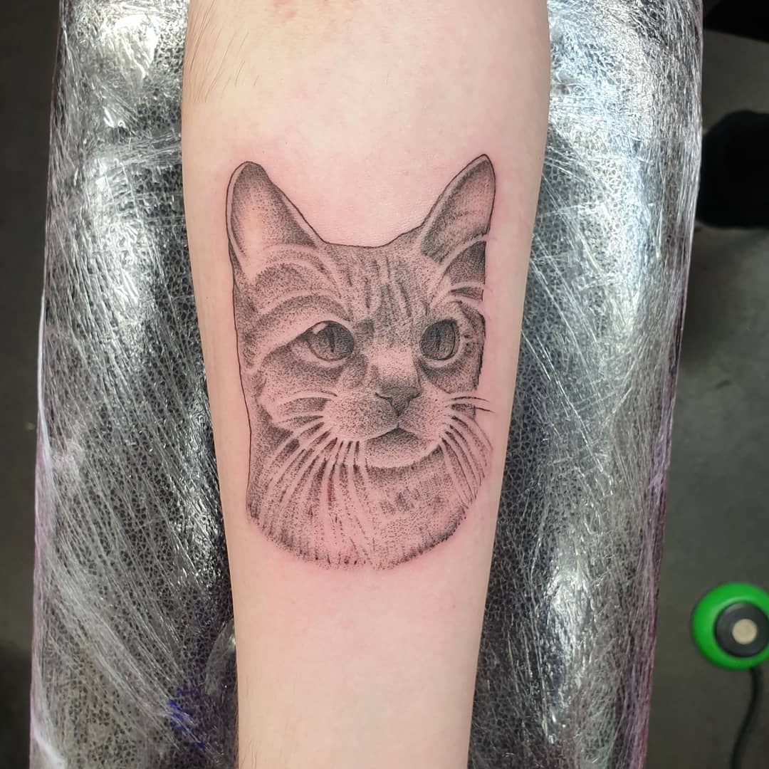 Fitz Presley immortalised for Roman&039;s first tattoo from the other day- thank you mate Would LOVE to do more like this please! Made @studioxiiigallery cattattoo catportraits dotworktattoo stippletattoo portraittattoo animaltattoos firsttattoo edinburghtattooer edinburgh scottishtatttooer scotland studioxiii tattoosbyalanross alrosstattoo