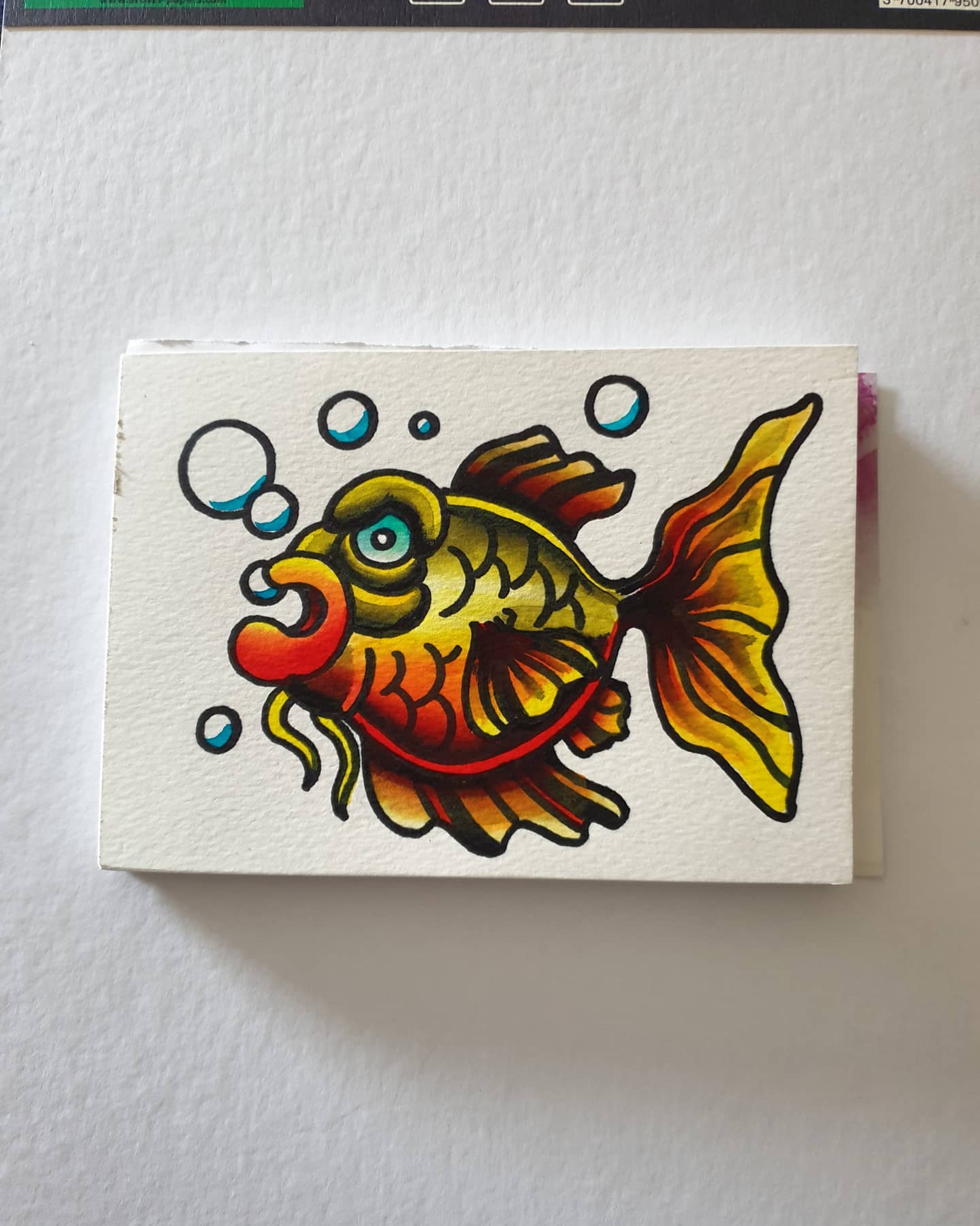 Wee painting of a pissed off fish who also hates lockdown…dont paint much as you can tell 🤣… will be a much improved when this is all over hopefully, going to try and do 1 a day til back to normality! …. keeping the mind busy anyway.. anything you see will be available to tattoo for much cheapness if life resumes….thanks for looking