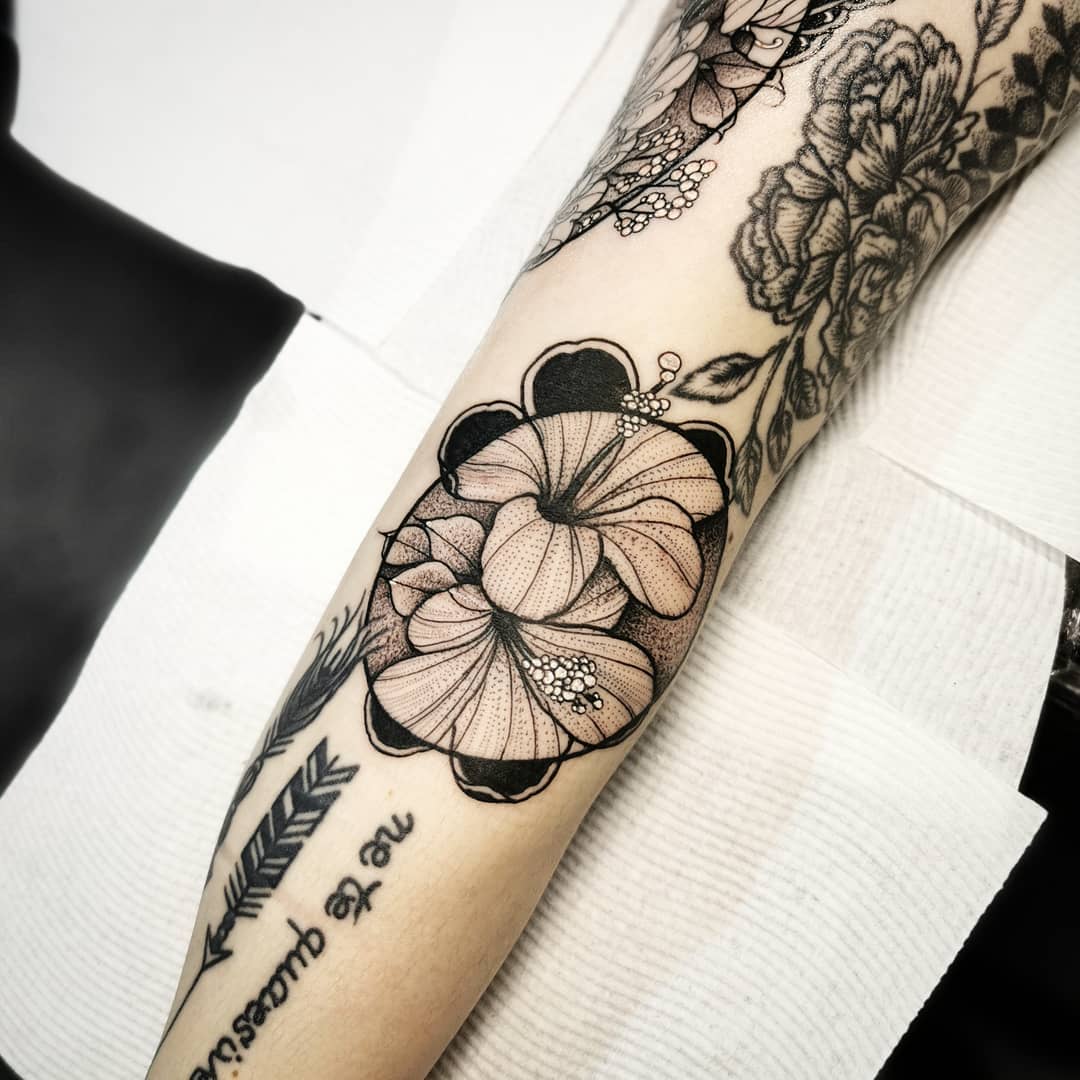 blackwork hibiscus tattoo done over @austattooexpo in melbourne