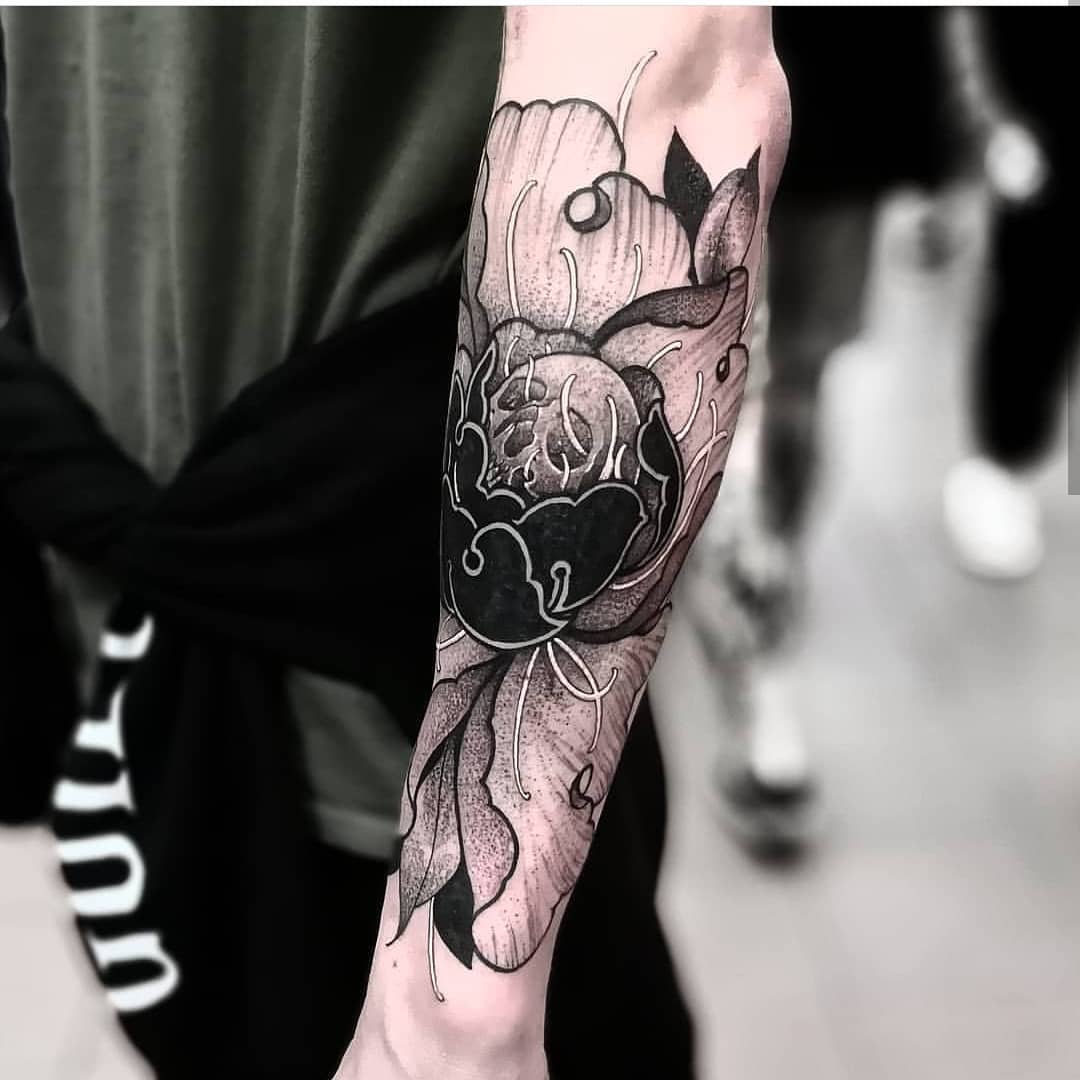 One of my favorite tattoos I&039;ve done freehand peony and skull tattoo that I did at the @scottishtattooconvention