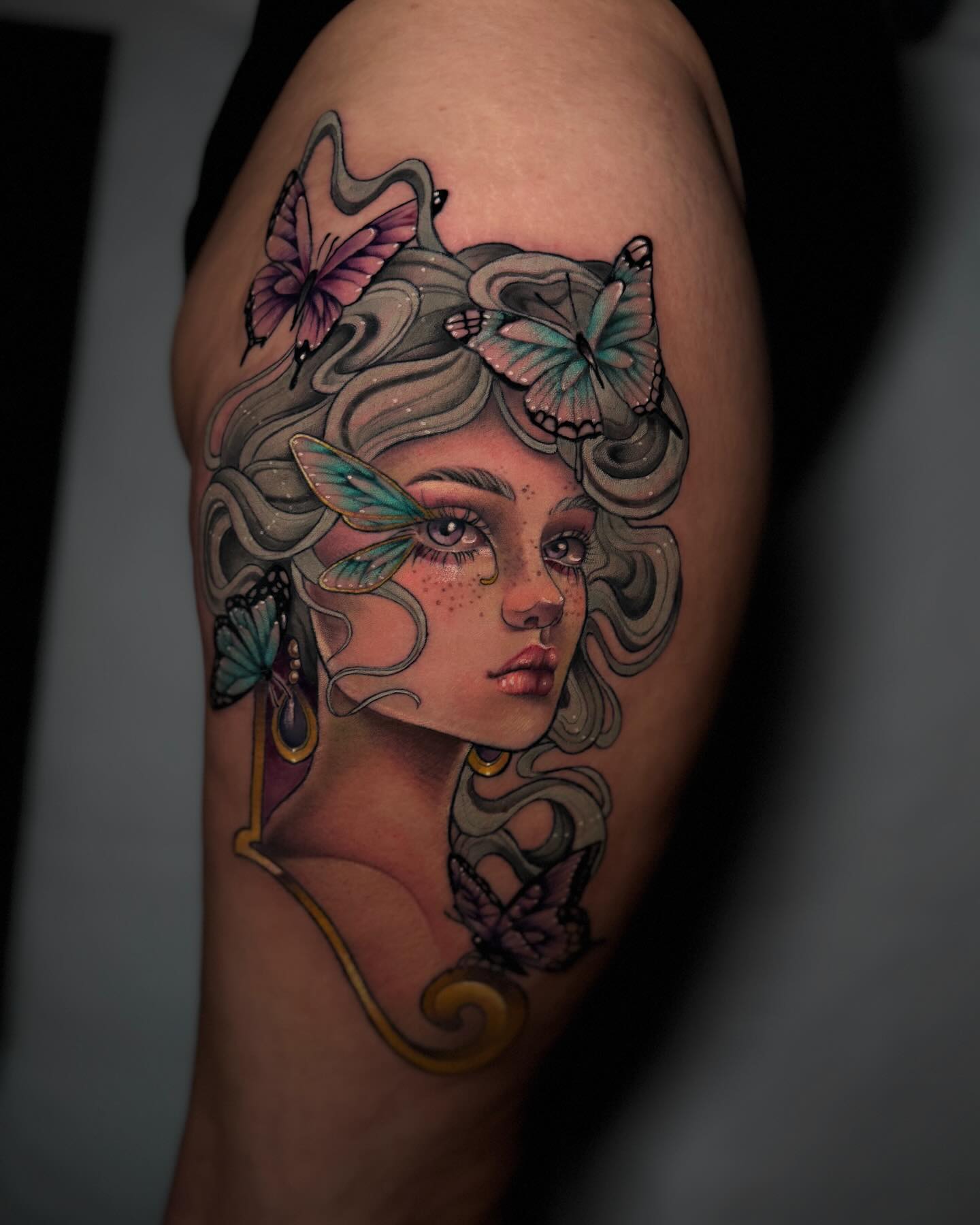 Lady face with butterflies for Tamara. Done a few weeks ago but I’m really bad with posting regularly 🥲 Tamara and I met at Scottish Tattoo Convention in March and she told me about her tattoo idea for pretty lady with butterflies. 6 months later, hours of work and a lot of pain and she’s ready ✨ If you would like to get booked with me please follow the link in my bio and fill the enquiry form 💌 Done at studioxiiigallery Sponsored by yayofamilia artist Aleksandra PawlikSeptember 17, 2025Alex-C