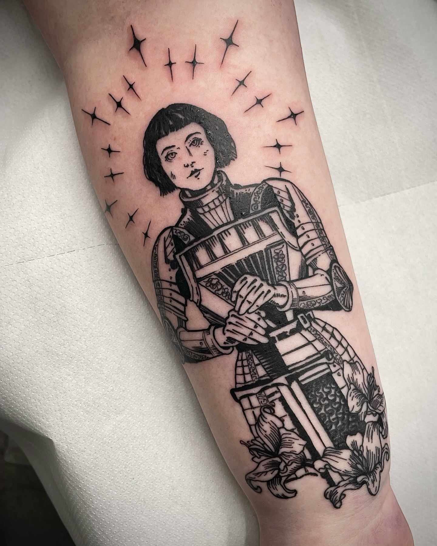 Joan of Arc for Ruby😌✨lovelovelove, thank you! Books open,DM if you want a tattoo. . . . Petra BaburkovaNovember 1, 2025Petra-C