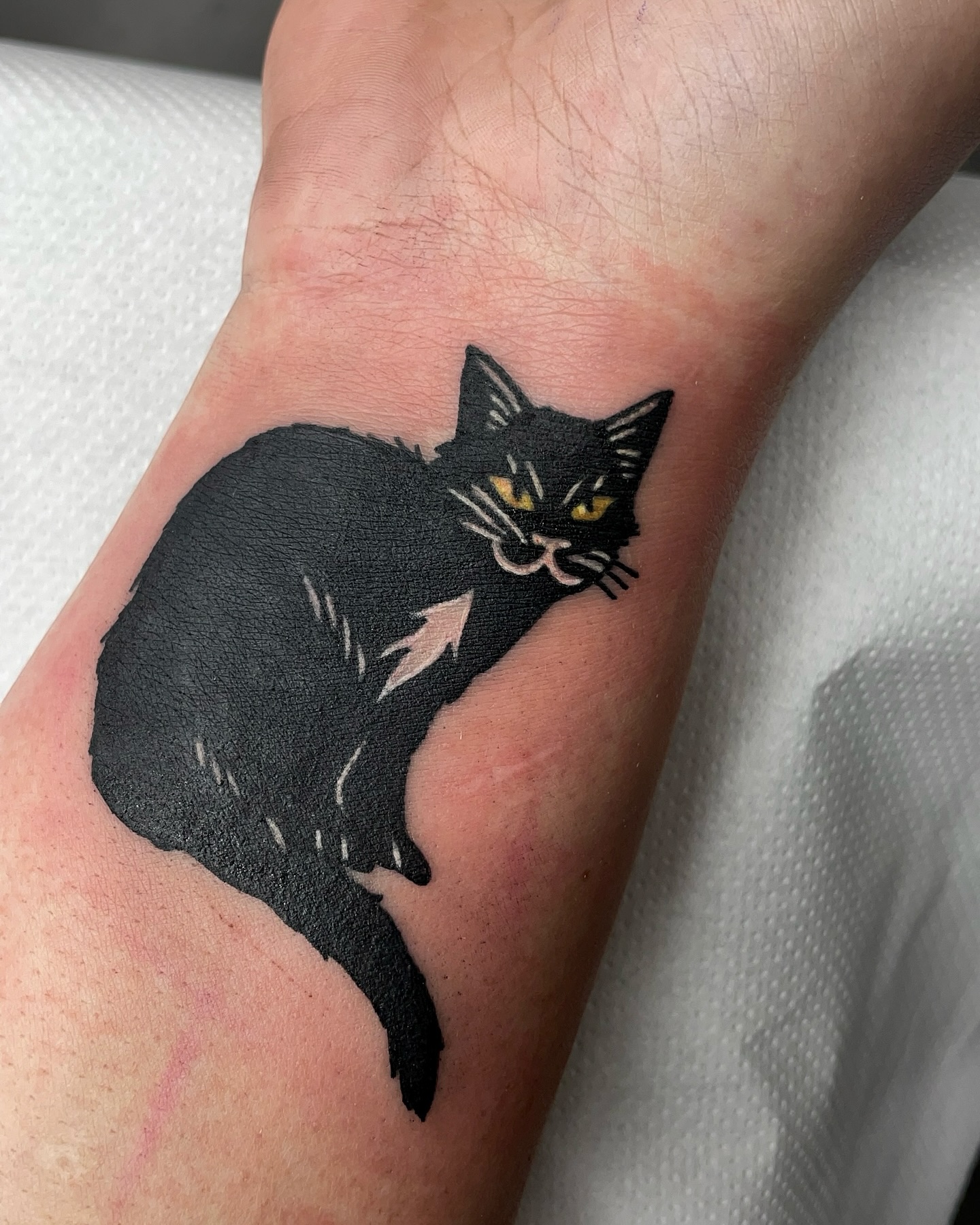 The Cat-Sìth cover up on wrist 🫶 swipe to see what it was before we blast it over with a cute black kitty✨ Taking bookings now, DM. . . . Petra BaburkovaNovember 3, 2025Petra-C