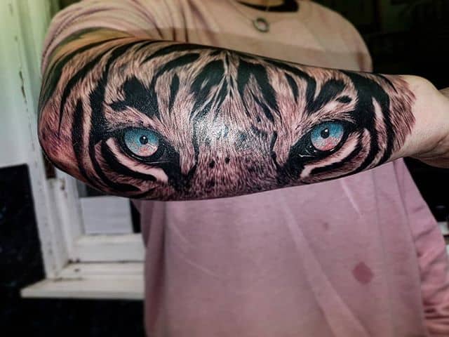 BIG session today for Nathan. 90% done with this lion/gladiator piece. More detail and upper background to come. Thanks again buddy! 🏻 . . . .