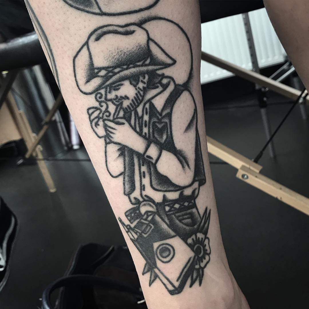 Healed Woody Guthrie guitar _________________ Done at _________________