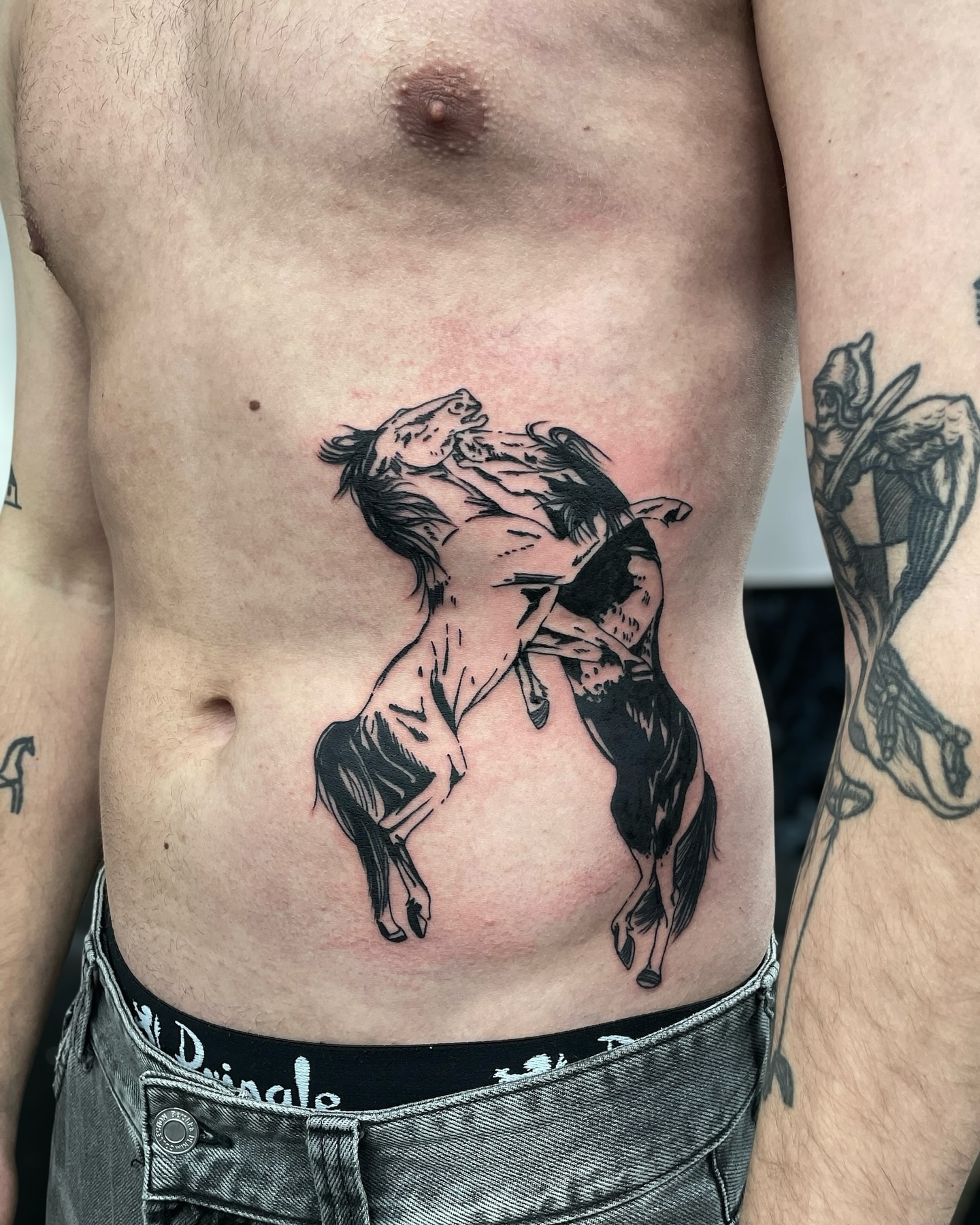 Broncos from my flash for Tom😁 Thanks a lot for getting these done, sick placement!🔥 Dm for bookings,choose from the flash in highlights or enquire about custom work. . . . men tattoo flash horse design lineart woodcut linocut line tattoo masculine women tattoo tattoo ideas tattoo inspiration tattoo artist Edinburgh tattoo studio black tattoo torso tattoo patchwork scotland Petra BaburkovaFebruary 16, 2026Petra-C