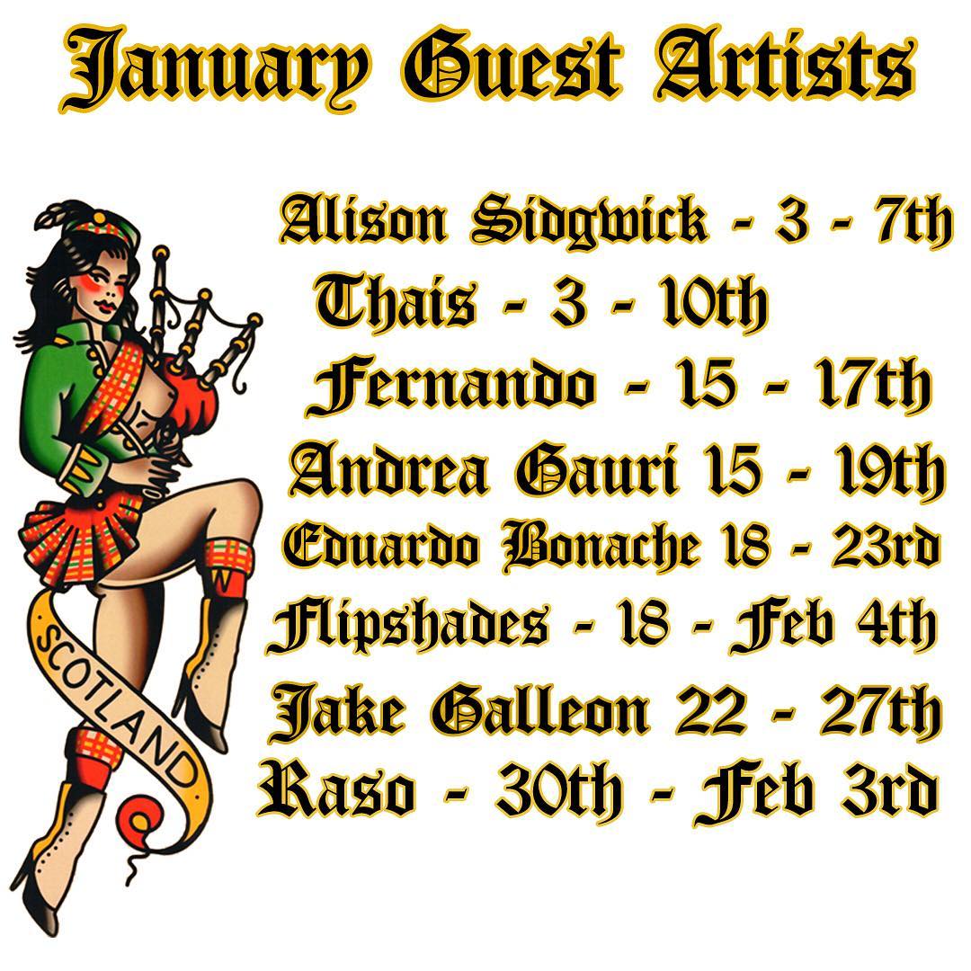 January’s guest artists are looking pretty mad! & Contact artists directly or us to book in! ———— StudioXIIIDecember 10, 2018Jo-C