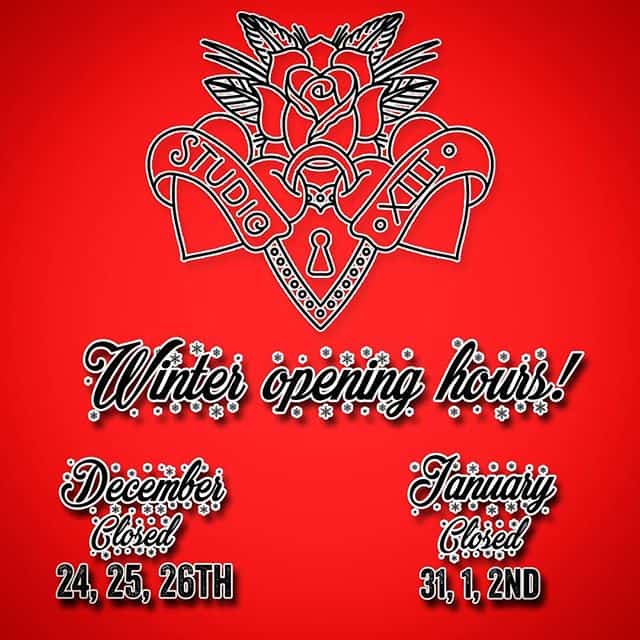 After today we close till Boxing Day to enjoy Christmas. Thanks to everybody who’s bought gift certificates, got pierced or been tattooed with us making this the busiest holiday season we’ve ever had! Merry Christmas from the Studio 13 family ️ ————— ————— StudioXIIIDecember 23, 2018Jo-C