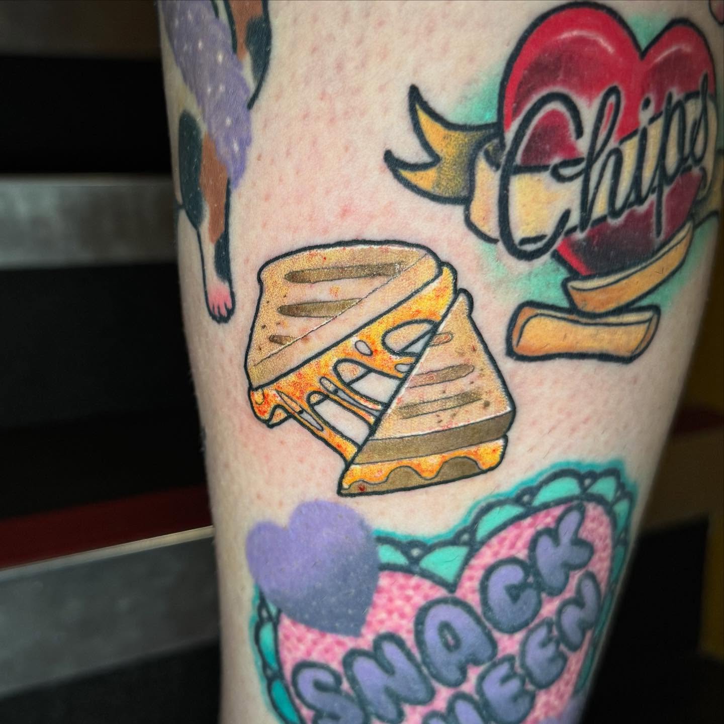 Grilled Cheese goodness. Also got to add this to Kirsty’s wonderful collection when we did the salt and sauce on the ankle. Love a cheeky wee gap filler. Always up for more of these kind of things! studioxiiigallery foodie.tattoos Courtenay DicksonSeptember 24, 2025Courtenay-C