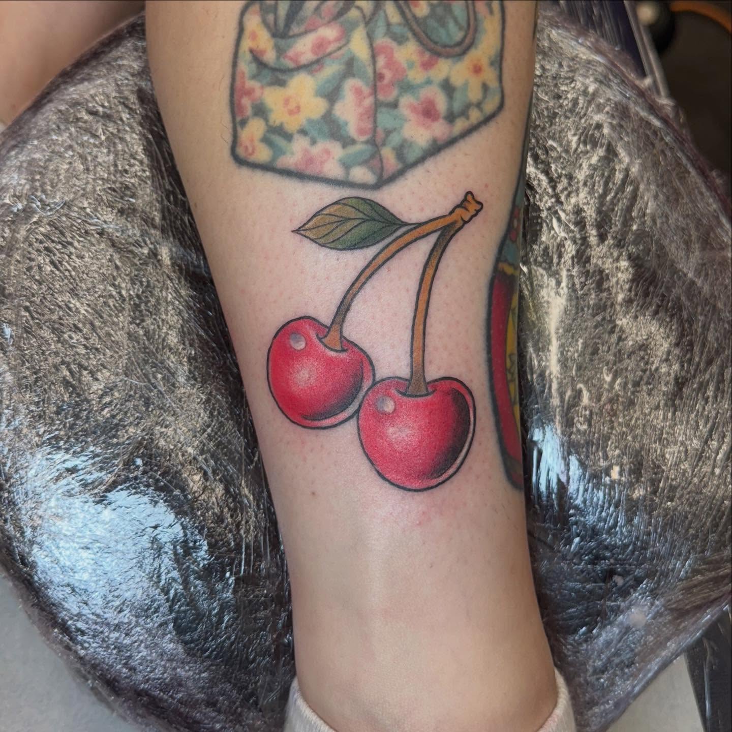 Couple of cherries to add to Loretta’s leg to start filling up some gaps. Love how they fit into the leg can’t wait to add more. studioxiiigallery scottishtattooclub Courtenay DicksonSeptember 6, 2025Courtenay-C