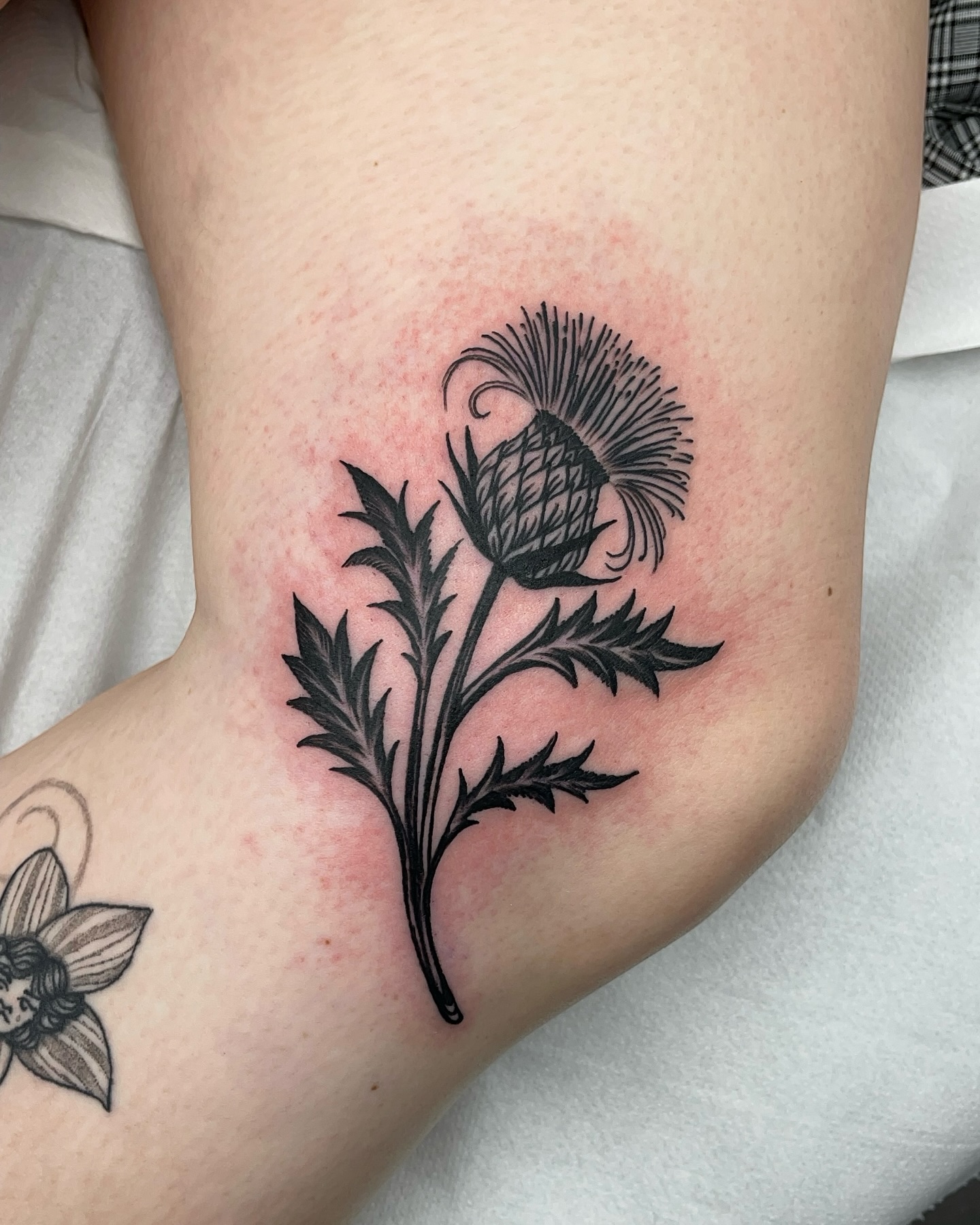 🌶️spicy🌶️inner side knee thistle for amazing Cassandra😁✨ thanks a lot! Taking bookings now, DM your enquiries. . . . Petra BaburkovaOctober 16, 2025Petra-C
