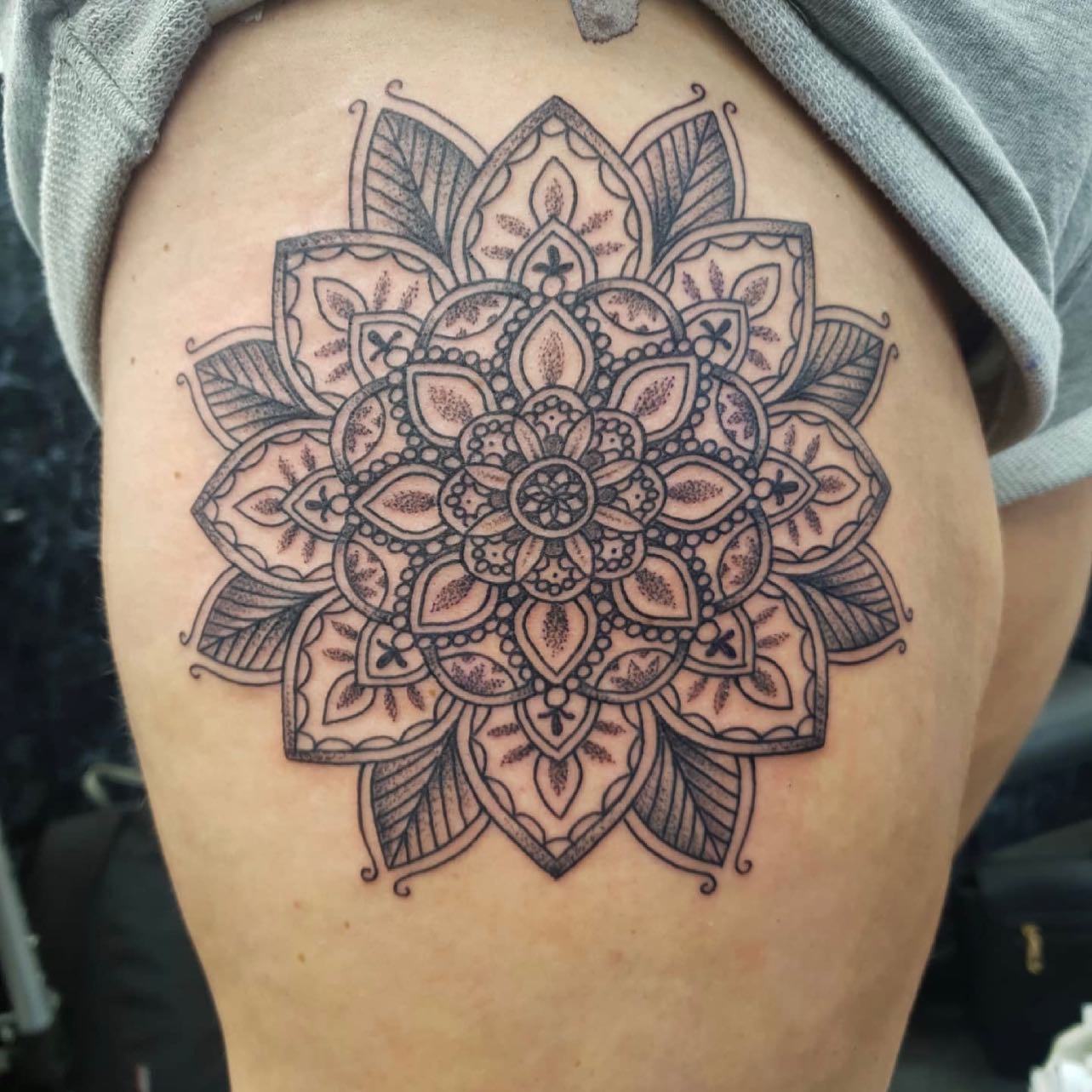 Huge mandala on the thigh by our resident Marc 🤯 📲 marcdiamondtattoo If you would like to get tattooed by Marc, then please message him directly for a quote or fill out the tattoo enquiry form on our website 💫 barber_dts easytattoo_uk eternalink dynamiccolor lockdownneedle stencilstuff StudioXIIIJune 16, 2023Jo-C