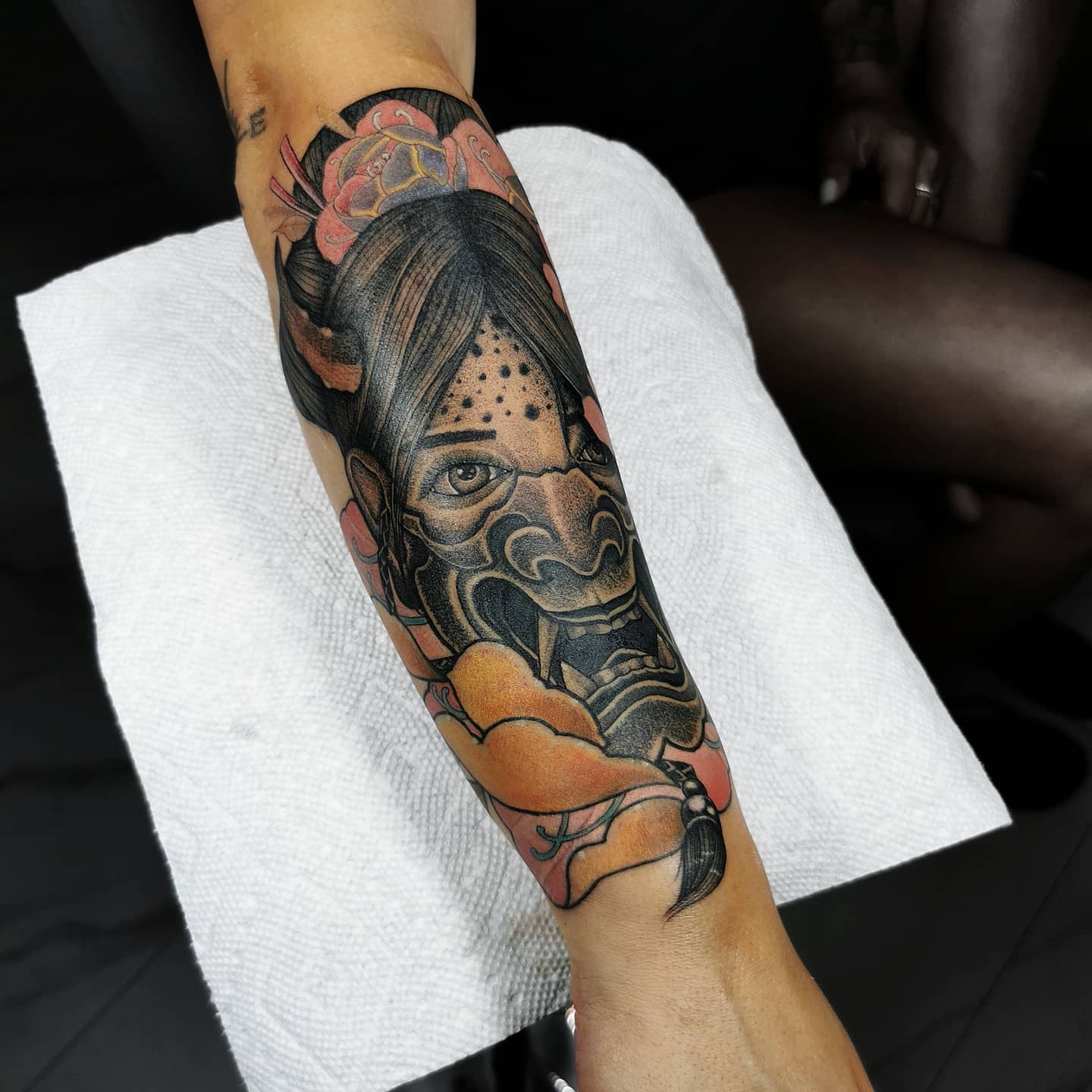 Some color 😅 hannya with some bright peonies for _cathriina_ done in . . Swipe to see the full fac Boris BianchiFebruary 23, 2021Boris-C