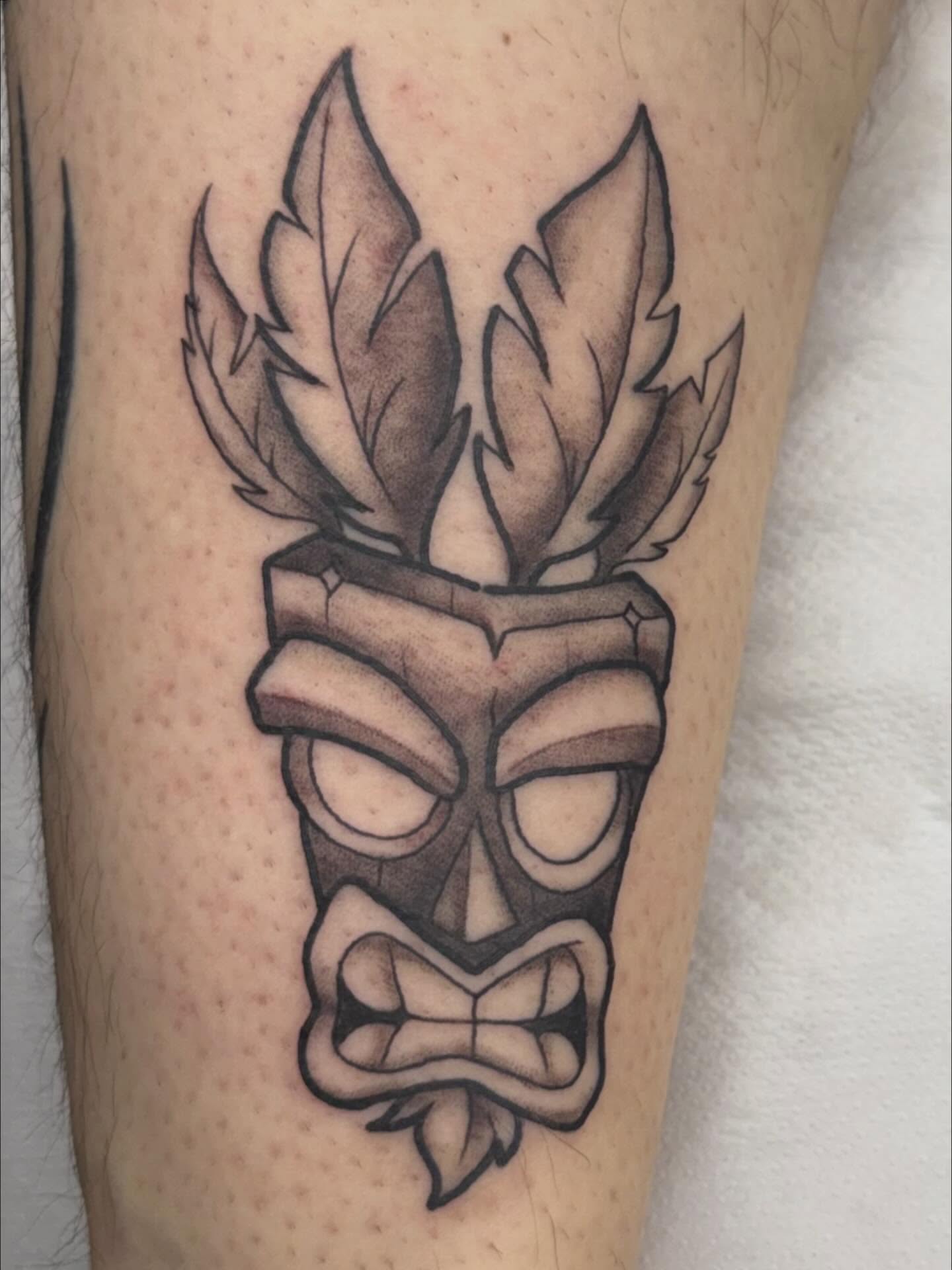 Aku Aku to add to my very talented pal akos.tattoos leg. Head over to his page for some super crisp tattoos! Always an honour to tattoo another tattooer. studioxiiigallery Courtenay DicksonJanuary 31, 2026Courtenay-C