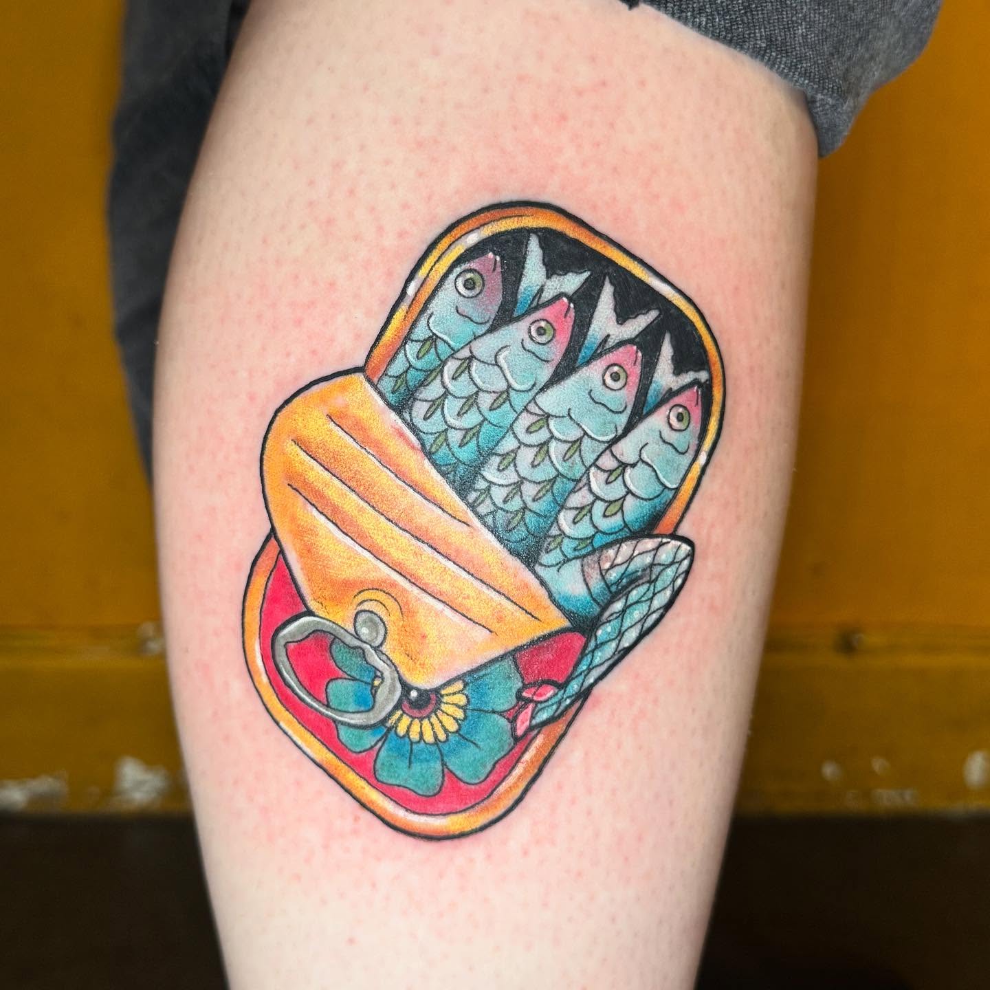 Some sassy sardines from my wanna dos for Andie. Thank you so much for picking these wee guys up and sitting like a total champ. More fun stuff in my highlights if you wanna snap something up yourself! studioxiiigallery foodie.tattoos Courtenay DicksonOctober 10, 2025Courtenay-C
